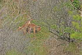 Op een gegeven moment zag ik vanaf een duintop wat drukte in het struikgewas.