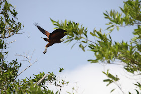 De moerasbuizerd (black-collared hawk) bleef lang zitten toen we voorzichtig met de korjaal naderden